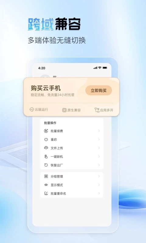 一键操控多台云手机,同屏预览与同步操作尽在指尖。分组管理,自定义分配,让设备 管理井井有条,高效又便捷。